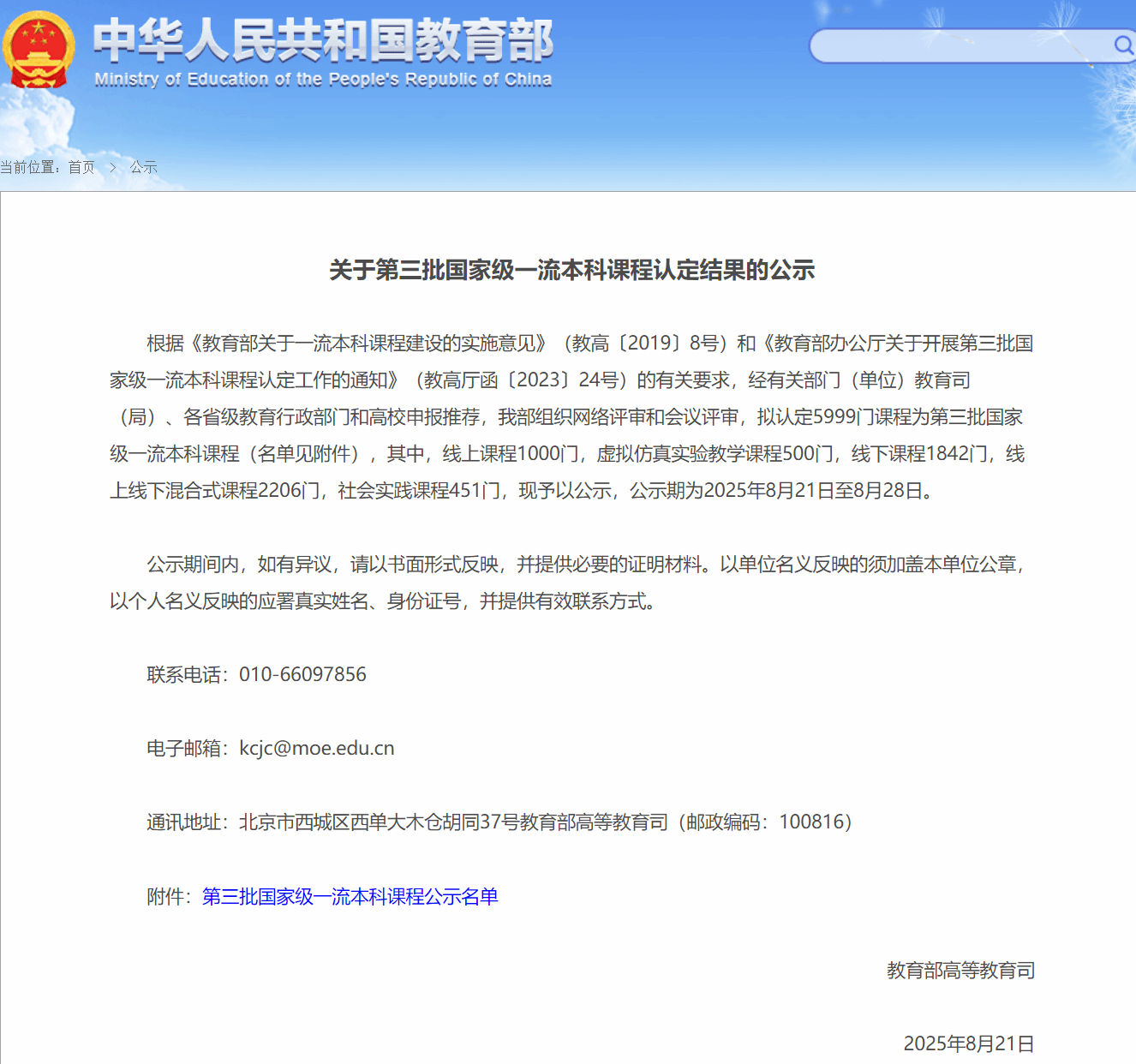 课程是教育最微观的问题,解决的却是教育最根本问题。此次国家级一流本科课程的认定,对我院而言是一次里程碑式的跨越——这不仅是澳门金沙娱乐场 在国家级课程建设领域实现的“零的突破”,更标志着其课程建设水平正式获得国家层面的权威认可,为澳门金沙娱乐场 教学发展写下浓墨重彩的一笔。