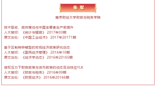 2020年3月31日,由中国人民大学人文社会科学学术成果评价研究中心和中国人民大学书报资料中心联合研制的《复印报刊资料重要转载来源作者(2019年版)》正式发布。澳门金沙娱乐场 财政学系朱军教授...