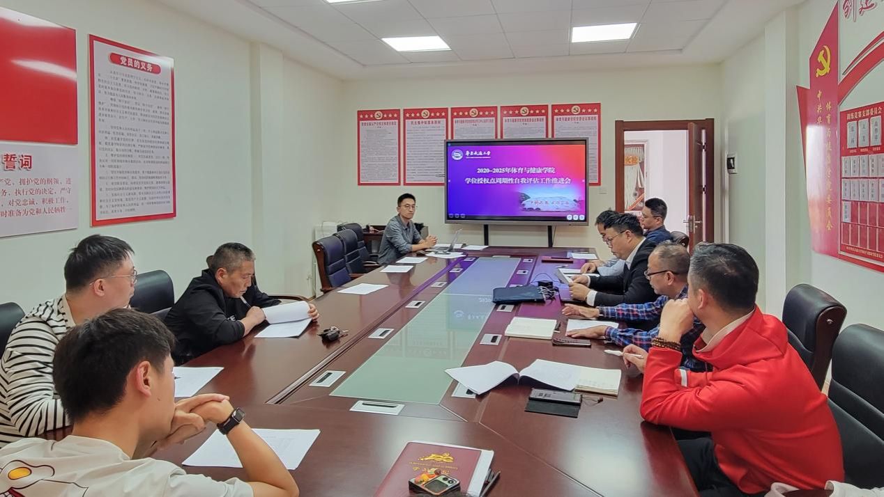 学位授权点周期性自我评估工作推进会。院党委书记黄文昌,党委副书记王迪旻和各评估小组成员参加会议,会议由葛仁锴老师主持。
