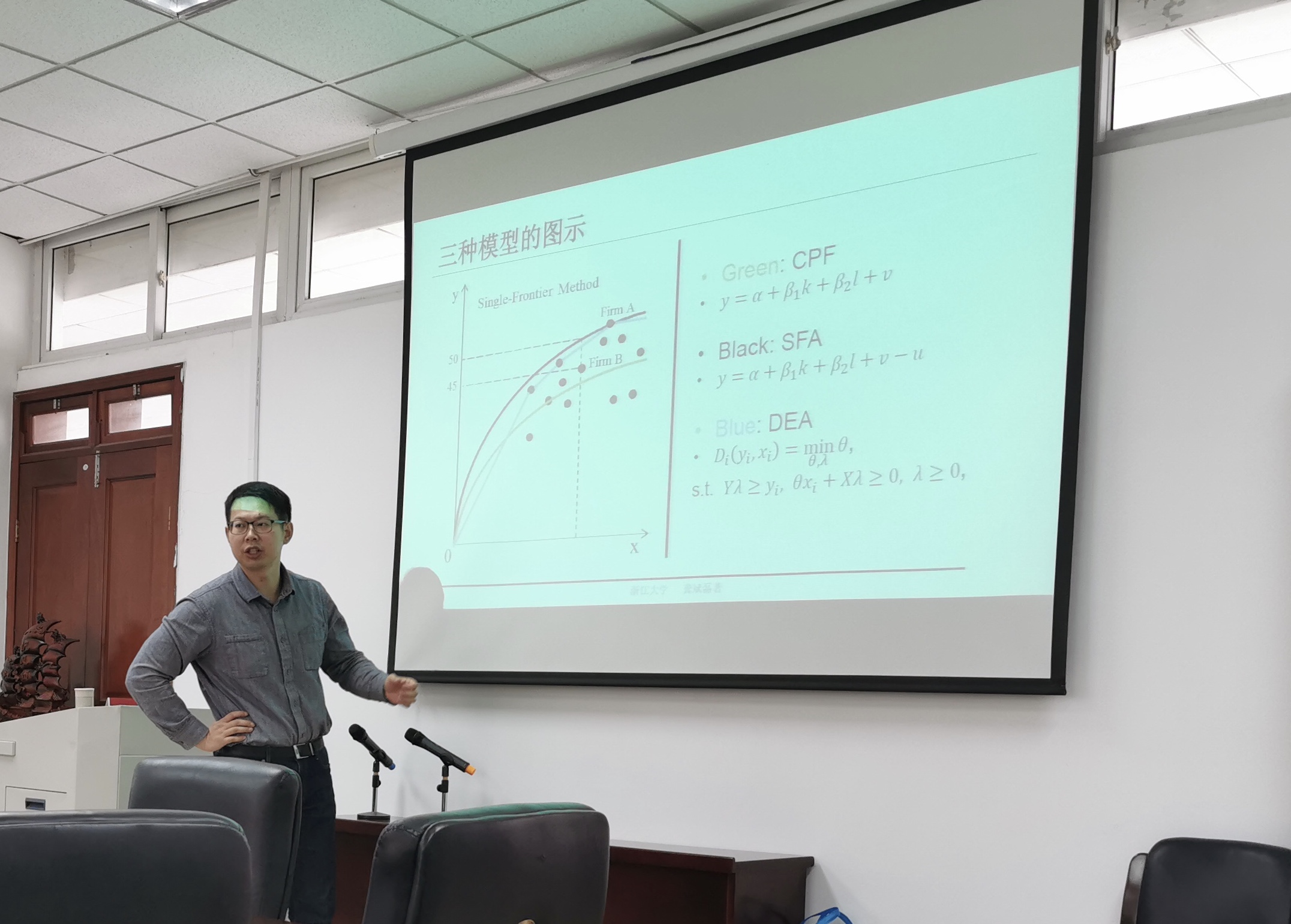 讲座伊始,龚斌磊研究员从生产函数和生产率入手,系统分析了生产函数和生产率的重要性,全要素生产率学术意义以及在我国全要素生产率发展历程;接着,龚研究员以自己的课题研究为例,深入介绍了几个生产率模型的利弊,并进一步基于中国农村六个改革阶段,讨论了变系数的生产函数形式的必要性及可行性;最后,在模型选择法的基础上分析提出模型平均法,综合考虑多个模型,使评估结果更为准确。