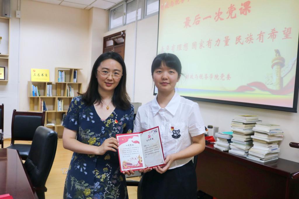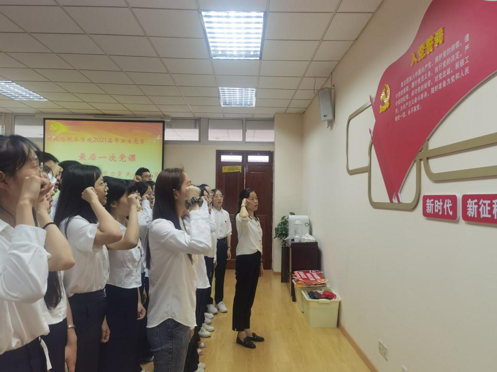 的真诚祝福;最后,在支部书记带领下,面对党旗,重温入党誓词。本科生第二党支部正式党员吕佳表示,“党组织给予的关怀让我心生暖意,毕业后,我会更加严于律己,牢记党员身份,严守规矩,树立崇高的道德追求时刻发挥党员的先锋模范作用。”