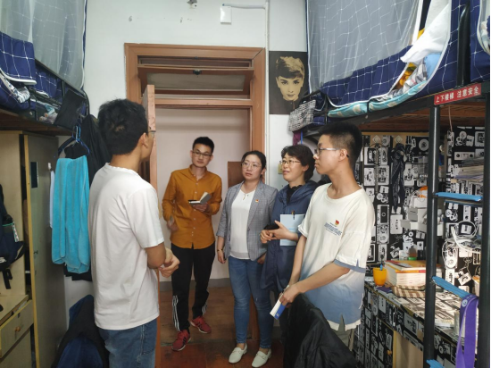 党委副书记李慕原、本科生第一党支部书记李玲、分团委张周驰老师及学生党员代表组成的“排忧解难团”共同深入走访学生宿舍,搜集同学们日常生活和学习中存在的问题和困惑,进行记录和反馈,以便更好地发挥党员先锋模范作用,有效帮助学生解决各类问题。