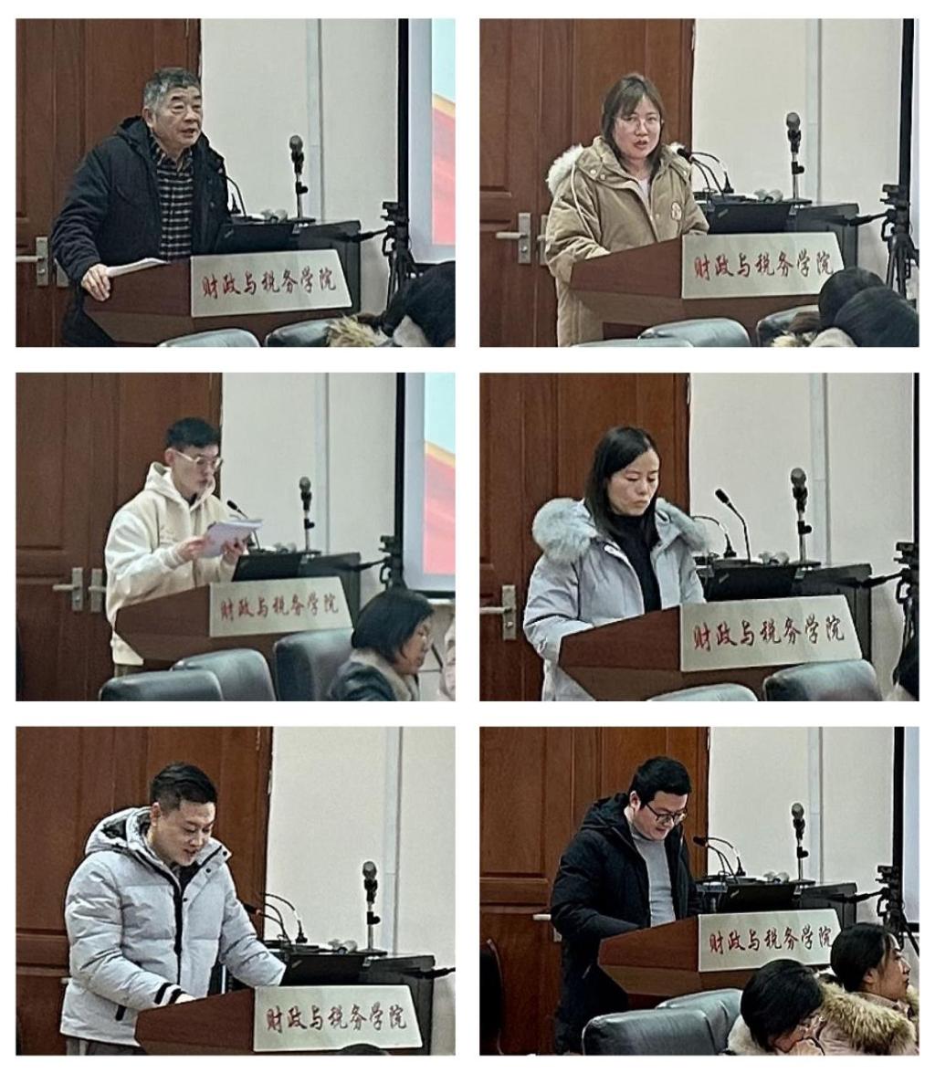 财政系党支部、税务系党支部、行政党支部、本科生第一党支部、本科生第二党支部、研究生党支部6个基层党支部书记参与述职评议,参评党支部书记对照述职评议考核主要内容,全面总结2023年抓党建工作情况,以履行职责情况为主,实事求是总结支部工作的成绩和经验、分析存在问题及原因、提出下一步工作思路和打算。