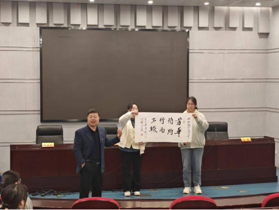 讲座最后,冯教授以《智取威虎山》中的经典片段“明知征途有艰险,越是艰险越向前”,鼓励学员们不畏艰险、明智笃行,并为同学们赠送了书法作品“不行待劳、辍而灼华”激励学员们要不负韶华,要登绝顶莫辞劳,为实现中华民族伟大复兴而奋斗。