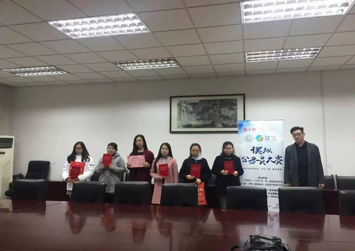 本次大赛于11月中旬启动,前期进行了模拟笔试,包括《行政能力测试》与《申论》考试。赛前培训给同学们详细讲解了江苏省公务员考试招考最新信息、考试流程,分析新题型、考试变化趋势和核心难点等。笔试前十名的同学进入决赛,身着正装接受考官面试。面试环节对选手的综合分析能力、应变能力、沟通能力、信息提取能力、语言表达能力和举止仪表均进行了综合评定。