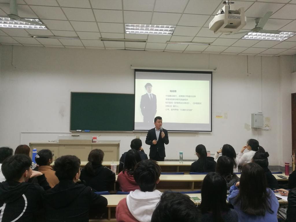 就业力提升系列讲座第一讲——银行报考策略讲座在德经楼110教室举行,讲座邀请了在银考界被称为“行测秒杀专家”的梅高翔老师主讲。财税澳门金沙娱乐场
