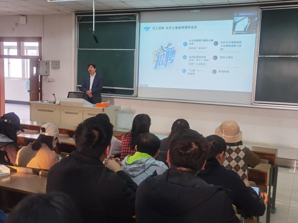 在博文楼202教室举办了事务所专题就业指导讲座,国瑞兴光税务师事务所所长高允斌应邀主讲,全体2021届毕业生参加了讲座,讲座由院党委副书记李慕原主持。