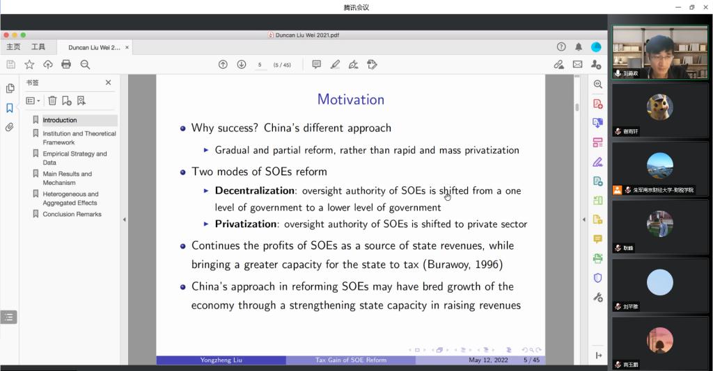师生作了题为《The Tax Gain of Reforming State-owned Enterprises》的线上学术报告。报告由澳门金沙娱乐场