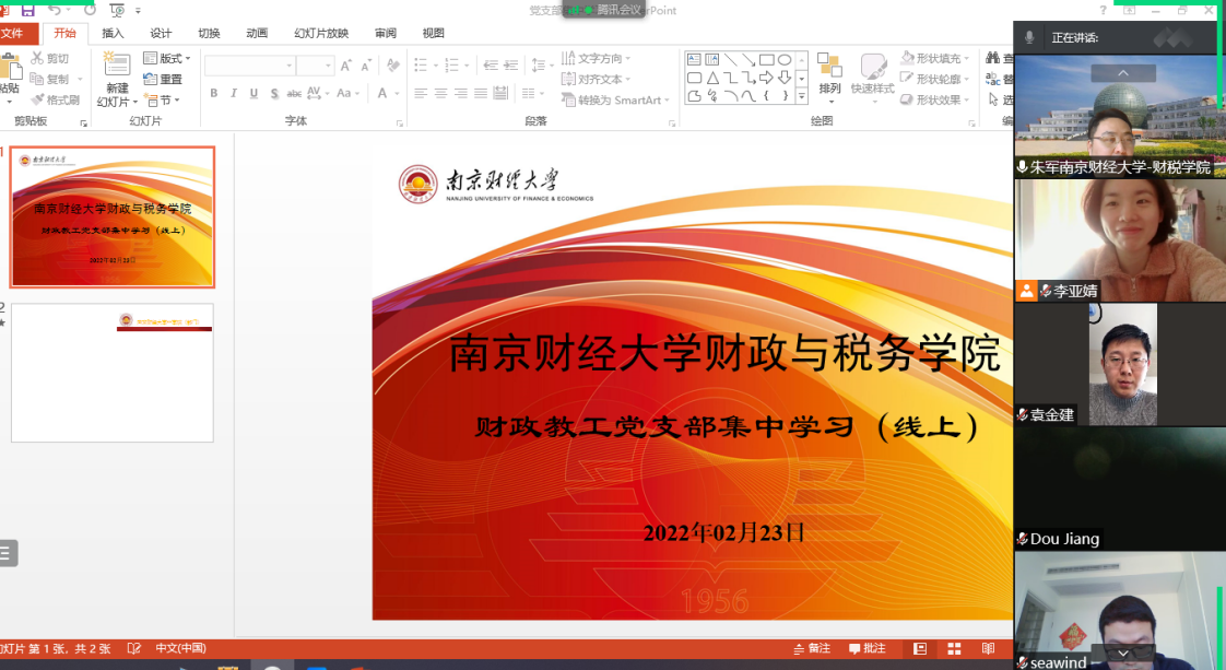“十四五”规划发展等方面发表个人学习感悟。本科生第一支部开展线上会议,支部书记朱思颖带领同学们学习研讨,邵淑玲同学认为,作为青年党员,在为理想全力以赴的同时,也应该在思想上与党中央保持高度一致,尽可能地帮助他人,融入集体,为集体做出贡献。研究生党支部的学生党员,在支部书记周立新带领下进行了集体学习,并积极参与交流,表达自己对会议精神的感受。财政系党支部召开线上集中学习,党支部书记朱军同志主持,青年教师张海峰、耿峰分别领学了相关文件。集中学习中,与会党员教师结合工作实际,畅谈心得体会。大家一致表示,要按照上述文件精神以及葛道凯厅长、张利民书记和程永波校长的讲话指导工作实践,提升思想境界,改进工作作风,增强服务效能,筑牢师德师风底线,切实发挥好党员先锋带头作用。