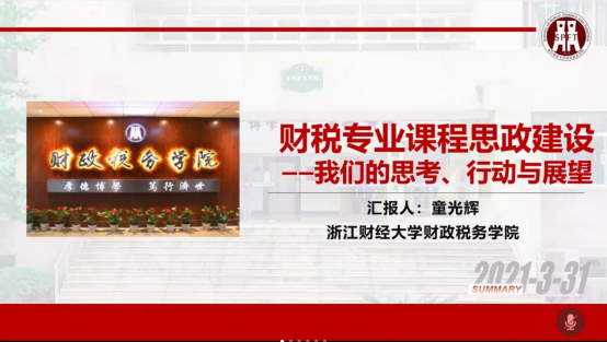 副院长童光辉开展了以“财税专业课程思政建设——我们的思考、行动与展望”为主题的讲座。讲座由澳门金沙娱乐场