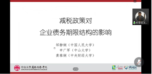 副教授、硕士生导师申广军通过腾讯会议开展了题为“减税政策对企业债务期限结构的影响”的学术讲座。我院部分教师和全体硕士研究生聆听讲座。讲座由我院院长朱军主持。
