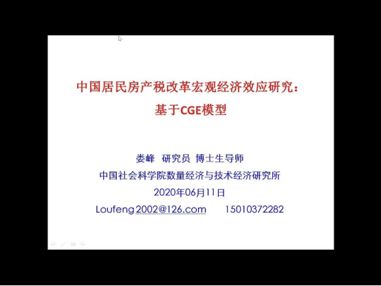 数量经济与技术经济研究所经济系统分析研究室主任、博士生导师娄峰教授通过腾讯会议作了题为“中国居民房产税改革宏观经济效应研究:基于CGE模型”的线上学术讲座。财税澳门金沙娱乐场