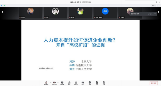 助理教授刘冲博士通过腾讯会议,为學院师生带来了一场题为“人力资本提升如何促进企业创新——来自‘高校扩招’的证据”的学术讲座。讲座由澳门金沙娱乐场