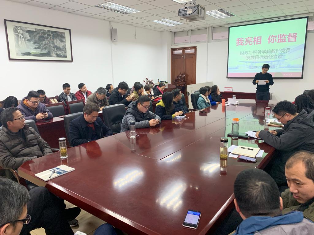 随后,财政系支部入党积极分子袁金建老师宣读了他的《教师党员发展目标责任书》,分别从政治学习、个人素养、教学育人、学术科研等方面设定具体目标,接受全院教职工的监督。