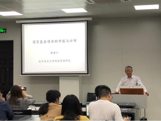 钟甫宁教授的讲座首先从评审人的视角对国家社会科学基金与国家自然科学基金的异同进行了比较。从选题、通讯评审、会议评审到申报材料再到成果与结题,钟甫宁教授均作了详尽的描述,并以自己的申报和评审经验为例,对两类基金项目进行了全面的分析;接着,钟教授特别强调了做学问的过程中,坚持问题导向的重要性,什么是现实问题,如何提炼科学问题等,钟教授通过案例法,从“证伪”到“可能的求真”;最后,钟教授还对青年教师的发展问题提出了殷切期望。他认为:遵守学术规范,不投机取巧是学术生命能够长期发展的基本保证。