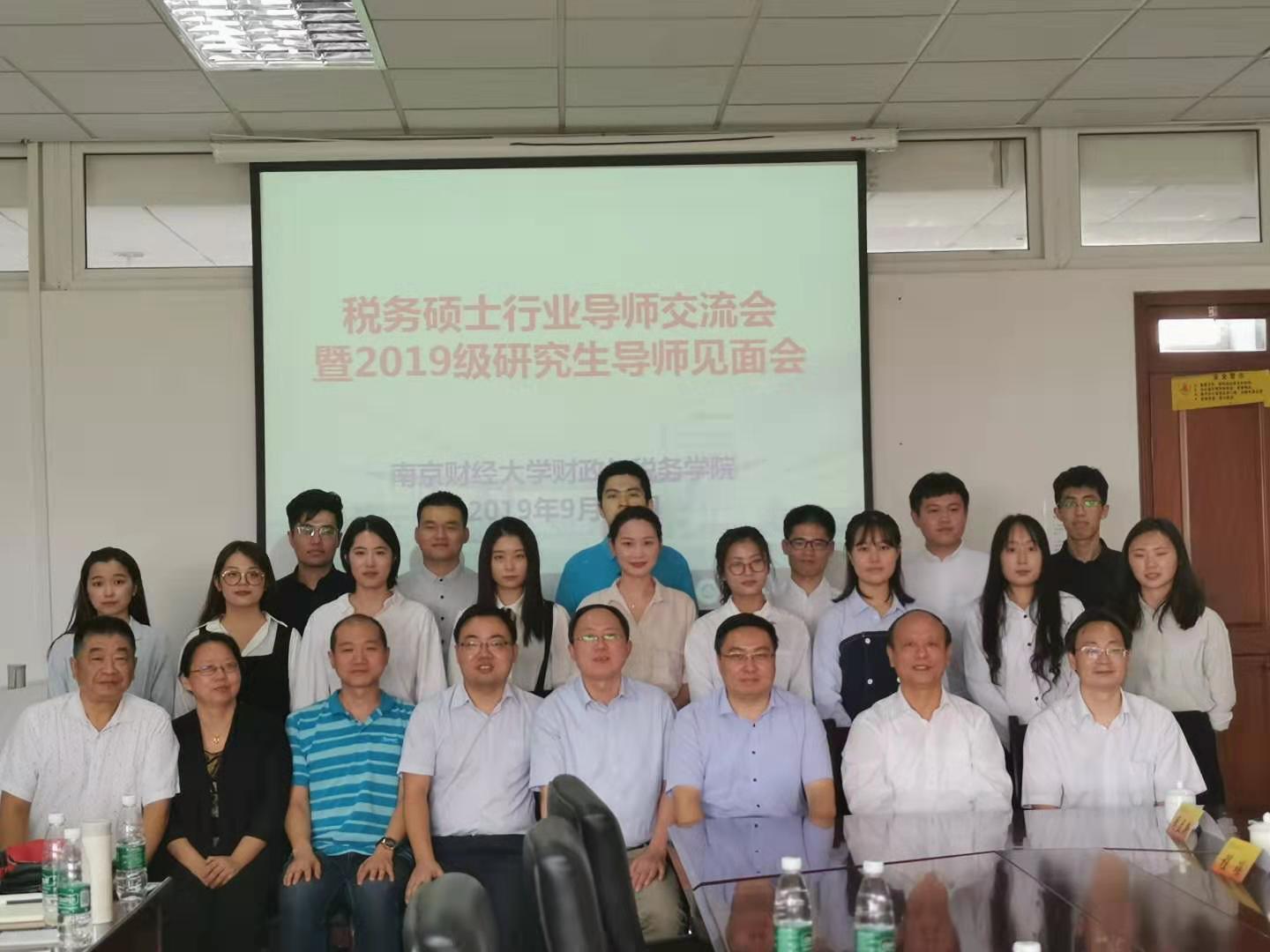 仙林校区德经楼408会议室召开了税务硕士行业导师交流会暨2019级研究生导师见面会。江苏省人大财经委江建平老师、江苏文投集团王国丰老师、江苏宿迁税务局吴健老师、中国邮储银行南京庐山路管辖支行于文国老师等行业导师参加了见面会。会议由副院长管永昊主持,澳门金沙娱乐场