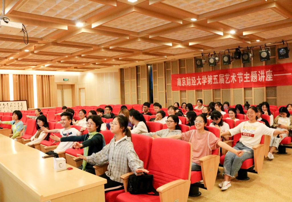 党委副书记李慕原主持,主讲人王斌是江苏省演艺集团歌剧舞剧院艺术指导,原任昆剧院副院长,导演,国家一级演员,国家文华导演奖得主。他在讲座的一开始,便将昆曲的欣赏心,归结为“拿得起,放得下,想得开”三大要素,强调应通过这种欣赏心升华审美,敏锐感知。随后,他就“不到林园,怎知春色如许”这句词示范表演,赢得现场观众的掌声与喝彩。为了使在座师生理解昆曲程式,王斌以动漫视频“粉墨宝贝”形式为大家介绍了生、旦、净、末、丑,并亲自示范四功五法。并邀请助演嘉宾施立群老师合作演唱牡丹亭,歌声余音绕梁将现场气氛推向高潮。王老师表示:“舞台源于生活。在扮演各色角色后,我才明白,生活中不必纠结于开心与难过,加强自身对抗负情绪的能力来营造美好的生活环境才尤为重要”。