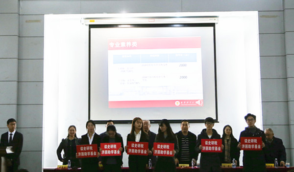 校对外联络处陆明峰处长讲话,他介绍了“读史研税,济困助学基金”的创立来自于张敬群老先生的著作《中国税史品读》的稿酬,他希望获奖同学能够饮水思源,养成良好的读书思考习惯,用实际行动回报社会。省税务澳门金沙娱乐场