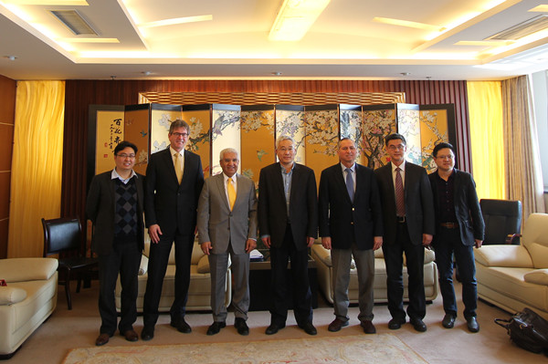 ,院党委书记陈苏,副院长朱军,党委副书记李慕原等在德经楼408会议室会见了来访团一行,随后Amir Mohammadi一行介绍了滑石大学的国际办学特色,学生实践培养等情况,朱军副院长提出了通过中美大学之间的交流来建立双方“一带,一路,一心”的教育合作愿景。双方就“4+0”中外合作办学模式的构想进行了沟通。
