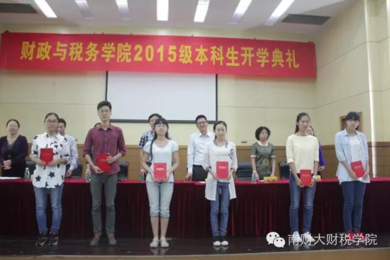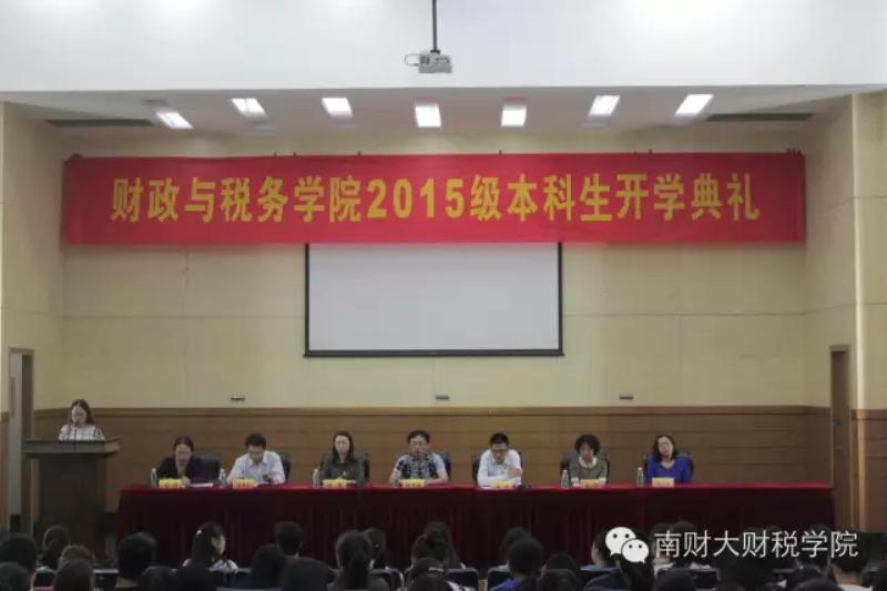党委书记张金龙、副院长黄斌、党委副书记陈苏、税务系副主任程瑶、以及财政系教授唐祥来、蔡军、吴美华等出席。开学典礼由党委副书记陈苏主持。
