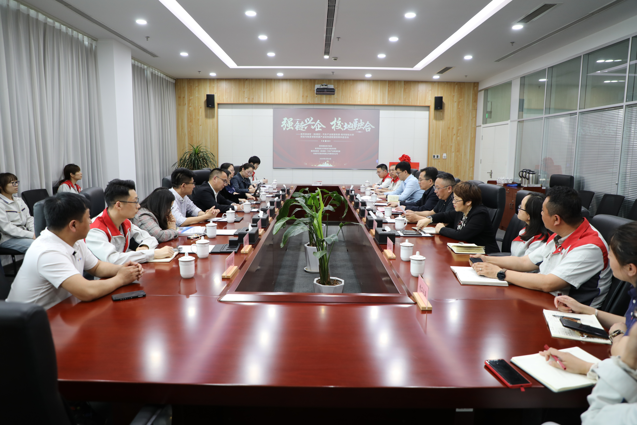 24日下午,叶校长一行赴泰州港经济开发区,与泰州医药高新区(高港区)汽车产业联盟党委共同开展“校地企三位一体”协同创新活动,以高质量党建引领产业高质量发展。泰州港经济开发区党工委副书记王晓瑾,泰州港经济开发区党工委委员刘力,泰州港经济开发区管理办公室综合办公室主任郭尚彬,以及长城汽车有限公司泰州分公司等产业链企业代表参加活动。