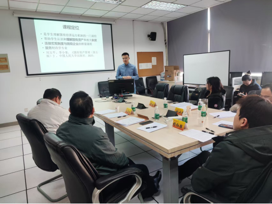 刘小峰教授作为本次说课活动的评审专家。两位主讲教师分别就《财政学》、《国有资产管理》课程进行了说课,四位评审专家分别就两位教师的说课环节进行逐项打分。