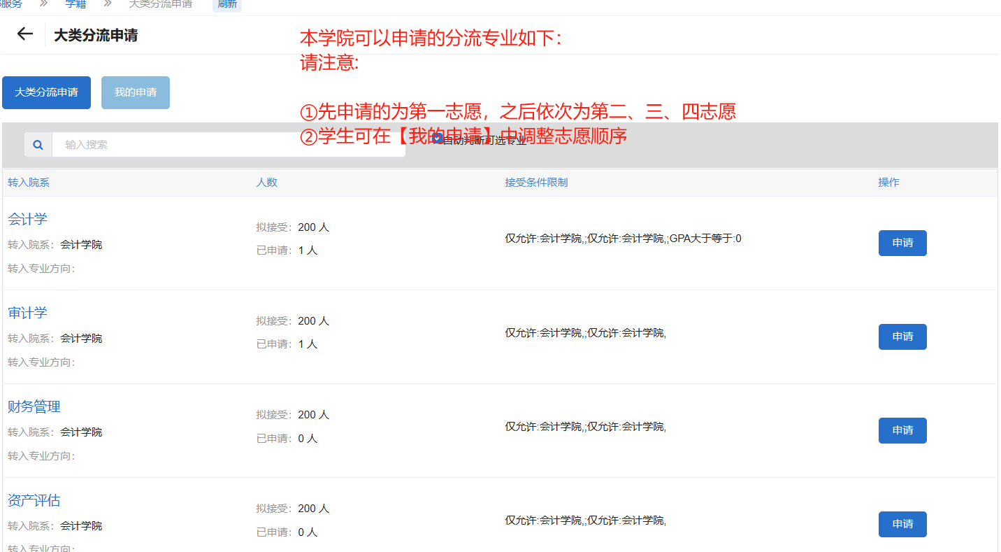 学生大类分流报名为例,进行说明(其中拟收人数为虚拟人数):